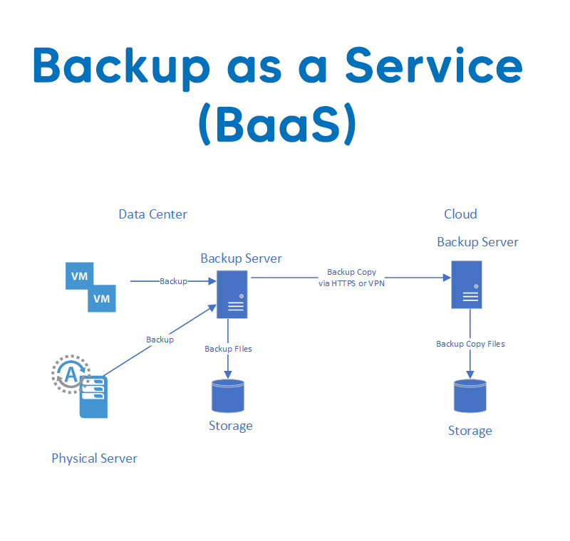 Backup as a Service là Giải pháp cho phép nhân bản môt phần hoặc toàn bộ hệ thống máy chủ server của doanh nghiệp lên hạ tầng điện toán đám mây (Cloud Backup), đảm bảo dự phòng sữ liệu cả hệ thống , ngay khi hệ thống chính gặp lỗi, hư hỏng hoặc gặp thảm họa thiên tai. Chúng ta có ngay một hệ thống dự phòng có thể hoạt động ngay hoàn toàn khi cần thiết.